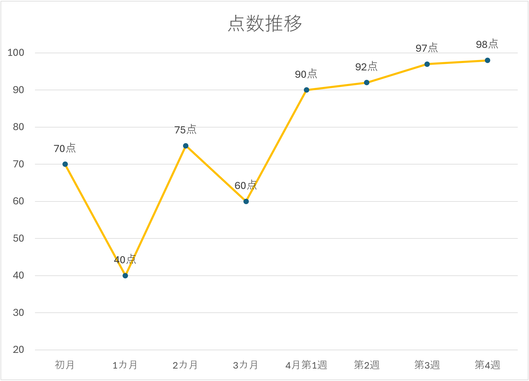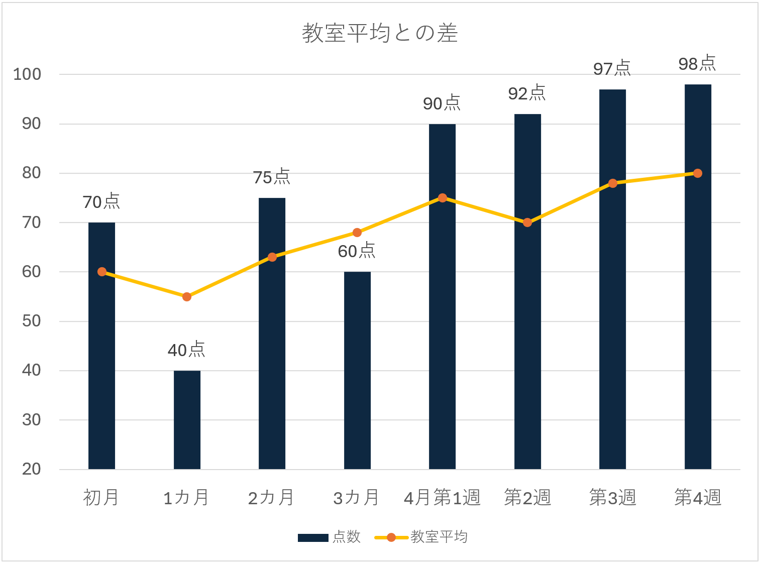 70点から98点まで上昇 39%改善