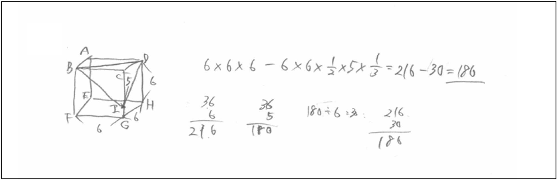 先生に教えてもらった通りに、見える線を実線、かくれている線を点線で描くようにしました。すると図が前より立体に見えて、奥の形が分かりやすくなりました。前はどこが奥なのか分からず混乱していましたが、図をていねいに描くと問題が考えやすくなりました。空間図形は、まず図をきれいに描くことが大切だと分かりました。